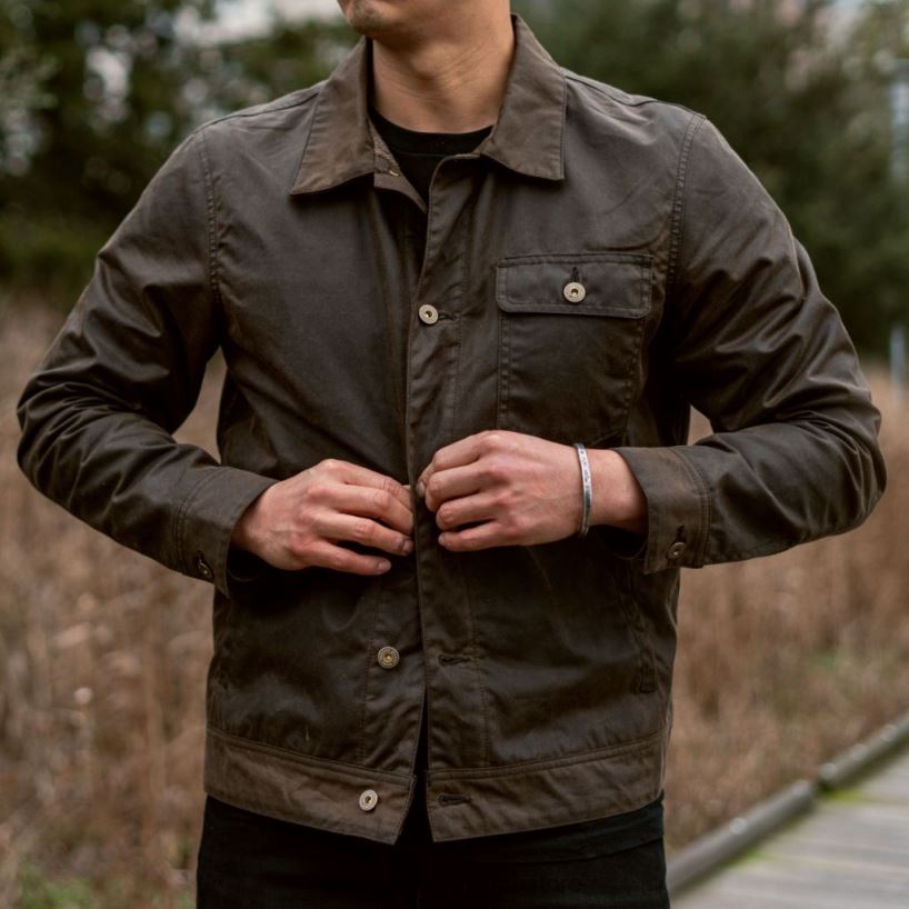 رجال زيتون غامق سترة حقل قماش مشمع Thursday Boots ملابس Z640JR235