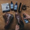 - يشمل منظف الجلود ، ومرطب الجلد ، ورذاذ مقاوم للماء ، وفرشاة الأحذية ، والقماش li>