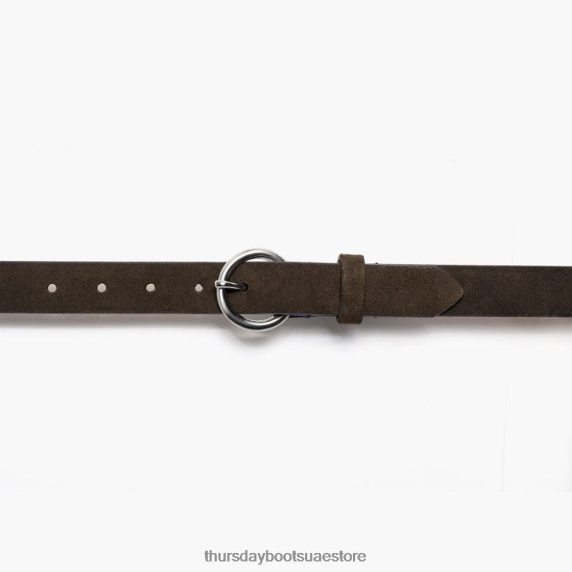 نحيف جلد الغزال الزيتون الداكن حزام جلد دائري Thursday Boots مُكَمِّلات Z640JR466